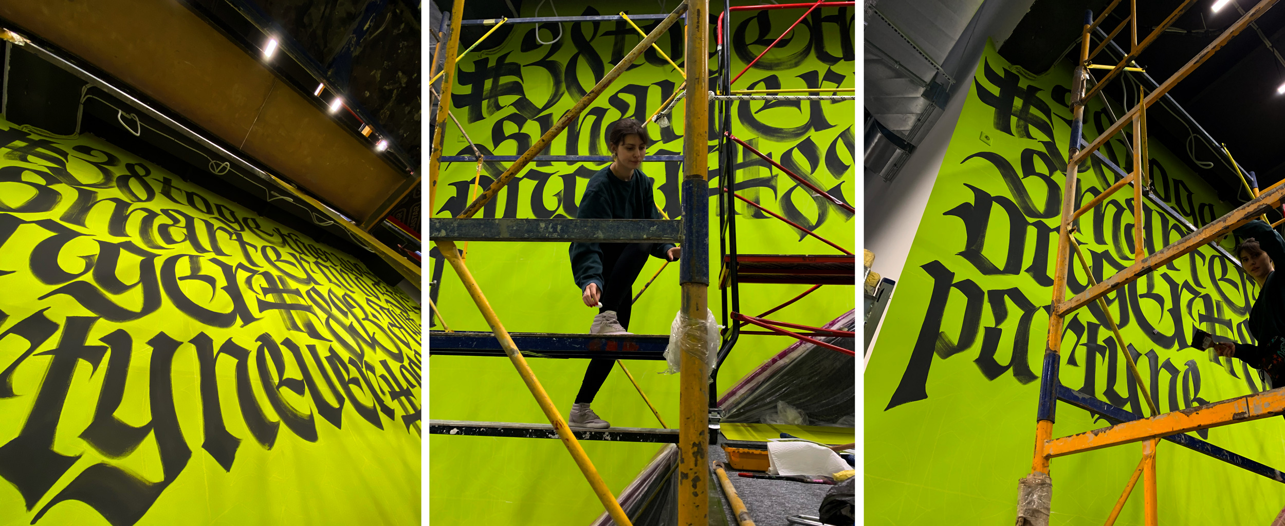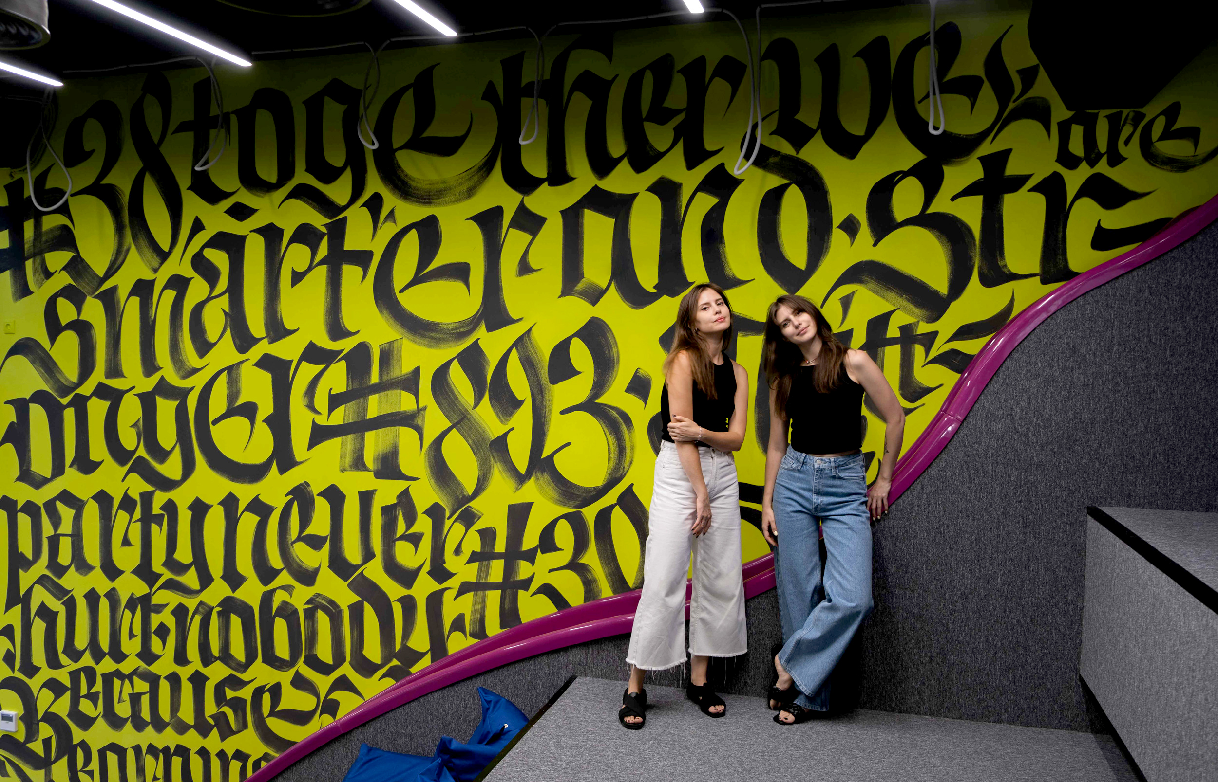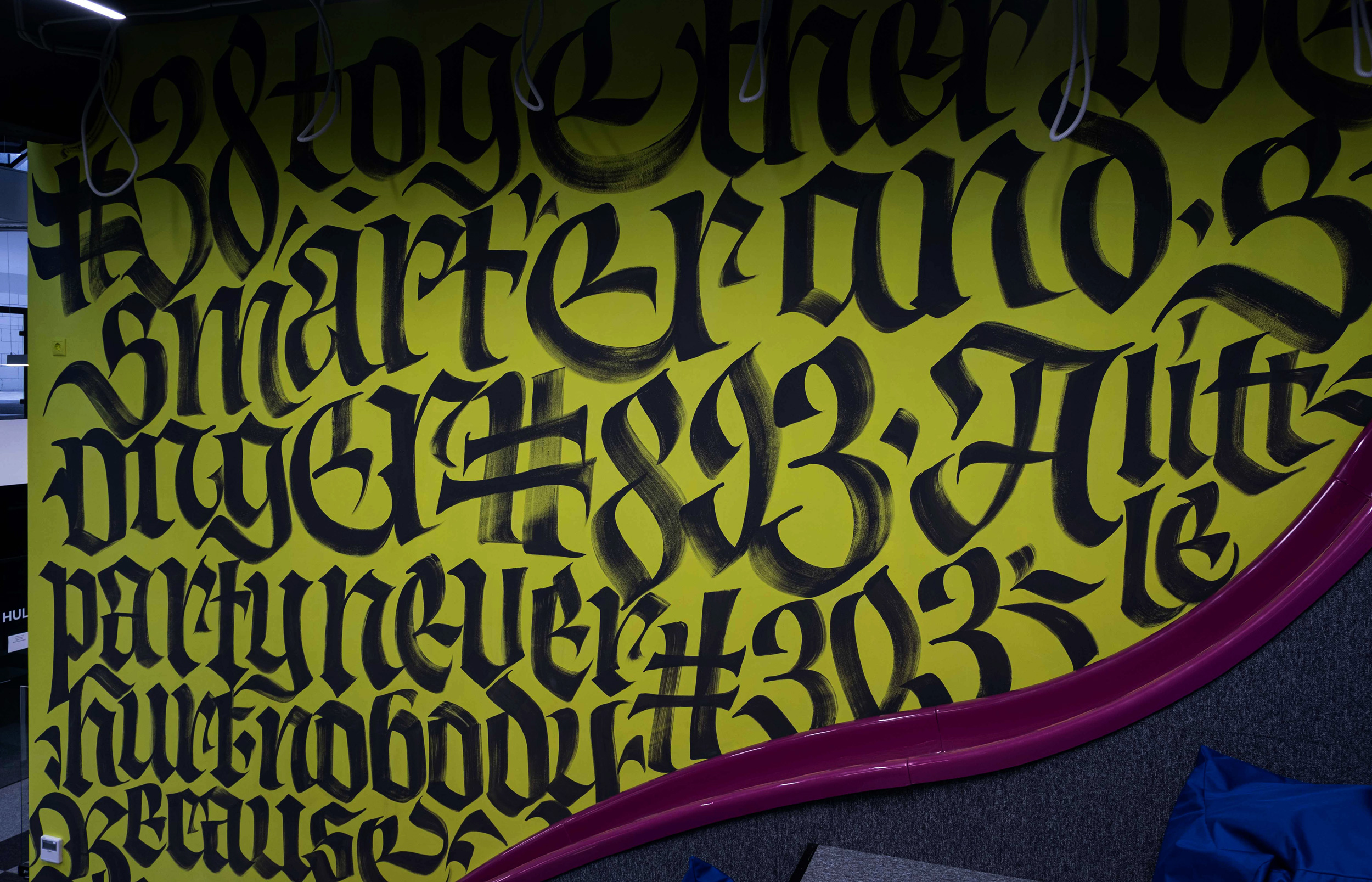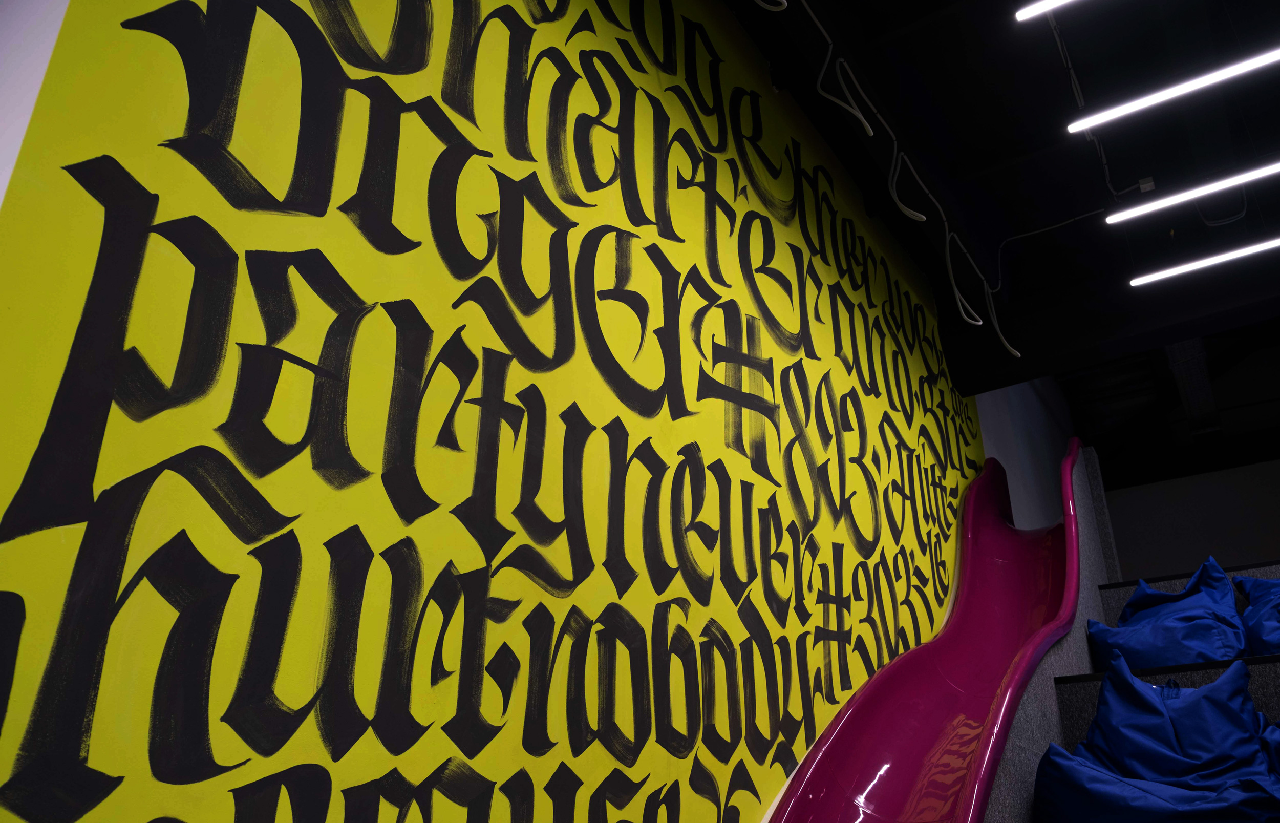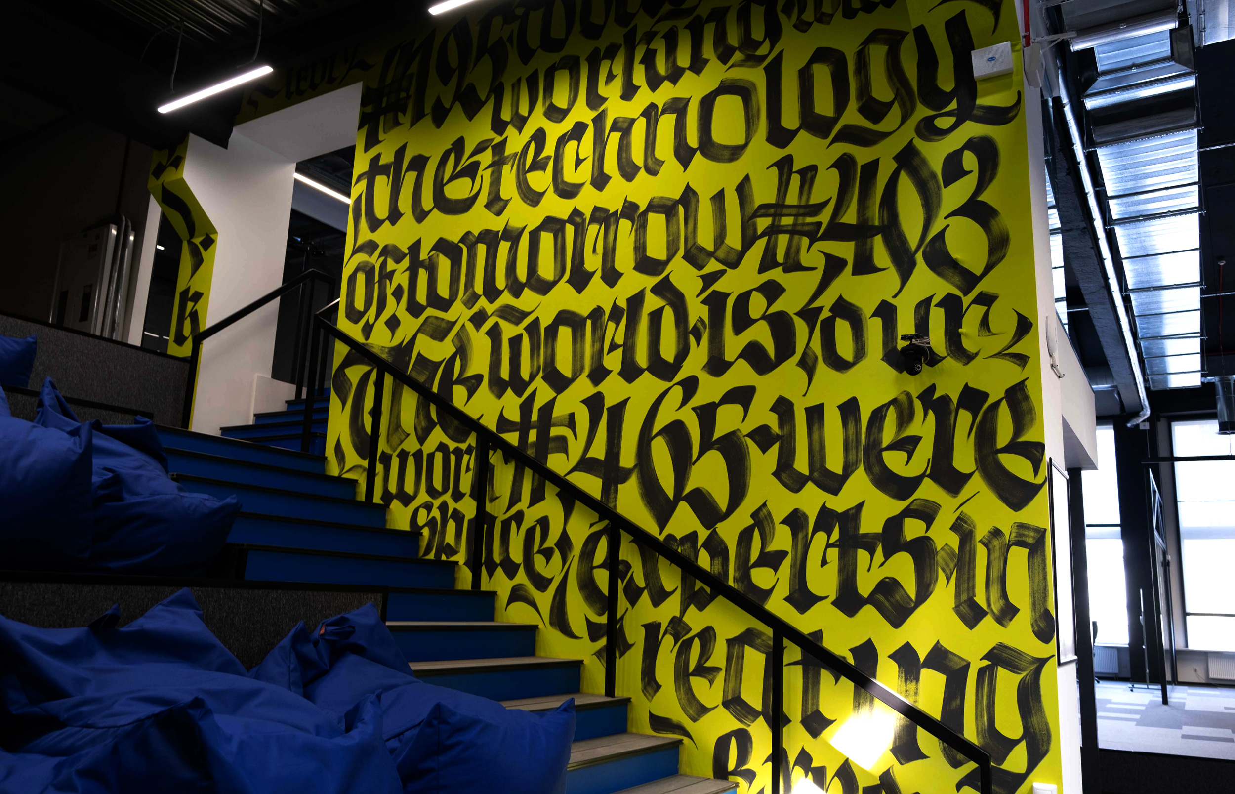 This is a relax area, large Gothic letters with the Levi9 company manifesto.