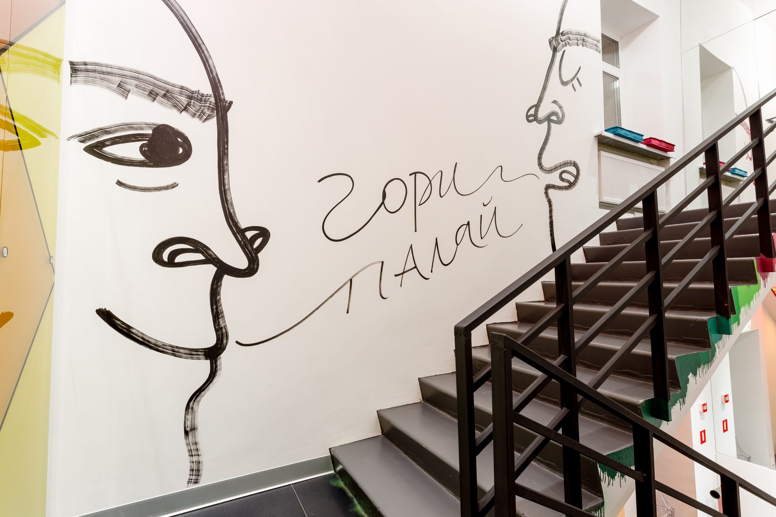 Rusalia, in turn, together with Vova were engaged in graphic design of this project. That means, all these drawings of the ear, nose, and eyes, and their transfer to the walls—are thanks to Rusalia. And in general, it’s nice that she gave the guys our contacts, and that we crossed our paths together in this project.